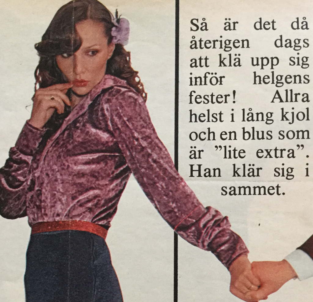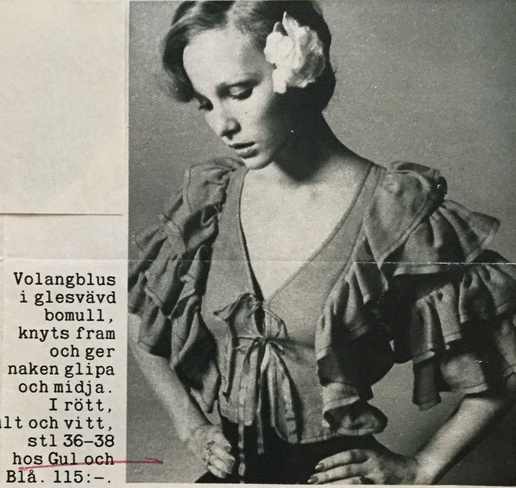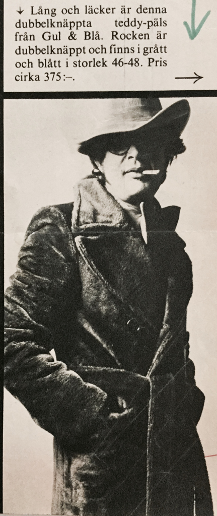 1)finns inga uppgifter. 2) Damernas Värld, Agneta Hellstedt, Svante Sjöstedt. 3-4-5) Damernas Värld. 6-7-8-9 ) Min Värld, Agneta Hellstedt, Stickan Forsberg, Carl Johan Rönn. 10) Svensk Dam T, Bie Nylund, Stig Forsberg. 11-12) Min Värld, Agneta Hellstedt, Olle Cederqvist. 13) Damernas V. 14-15) Svensk Dam Tidning. 16-17) Min Värld, Inger Moberg, Olle Cederqvist. 18) Svensk Dam T. Ewa Klingspor,Per Angre'. 19) Svensk Dam T. Bie Nylund,Robert Hansson. 20) Svensk Dam T, Inger Martin, Per Wiklund. 21-22-23) Svensk Dam Tidning. 24-25-26) Femina, Birgitta Söderhjelm, Lisa Kallos. 27-28-29) Hennes, Gunilla Myrberg, Bengt H. Malmqvist. 30) Lotta Lewenhaupt, Stig Forsberg. 31-32-33) Min Värld, Lena Bendrik, Johan Rönn. 34-35) inga uppgifter. 36-37) Femina, Anja Notini. 38-39) Lotta Hansson, Åke Sandström. 40) Damernas V, Inger Bogren, Olle Bogren. 41) inga uppgifter. 42-43-44) foto Jan Fridlund. 45-46)Hennes. 47-48) inga uppgifter. 49) Marianne Berglund, Per Wiklund. 50-51) inga uppgifter. 52-53) Hennes. 54) Femina, Gunnel Kangas. 55) Damernas Värld. 56) Hennes, Inger Bogren, Olle Bogren. 57) Femina. 58) Gunilla Wesslau, Charles Hammarten. 59-60-61) Femina, Anja Notini Wallin. 62-63-64) Damernas Värld. 65-66) D. Värld, Inger Martin, Carl Johan Rönn. 67) Agneta Hellstedt, Stig Forsberg. 68-69) inga uppgifter. 70-71) Femina. 72) Svenk Damtidning. 73) inga uppgifter. 74-75-76) Damernas Värld. 77) Femina, Kinta Nyebölle, Olle Bogren. 78) Damernas Värld, Marianne Berglund, Maggie Williams. 79-80-81) Damernas Värld. 82) Damernas V, Lotta Hanson, Anette Almen. 83-84) inga uppgifter. 85) Hennes, Inger Bogren, Olle Bogren. 86) Min Värld. 87) Inger Martin, Anette Almen. 88) Min Värld. 89) Inger Bogren, Olle Bogren. 90) Damernas Värld, Agneta Hellstedt, Svante Sjöstedt. 91-92) Damernas V. 93) Lotta Hanson Johan Rönn. 94) Vecko Revy. 95) Damernas V, Marianne Berglund, Per Viklund. 96-97-98-99) inga uppgifter. 100-101-102) Vecko Revy. 103) Hennes, Inger Bogren, Olle Bogren. 104) inga uppgifter. 105) Hemmets Journal. 106) Ann Hänke, Kertin Lundberg. 107) Agneta Hellstedt, Carl A. Nordin. 108-109-110) Vecko Revy. 111) Hemmets Journalen. 112-113-114) Vecko Revy.