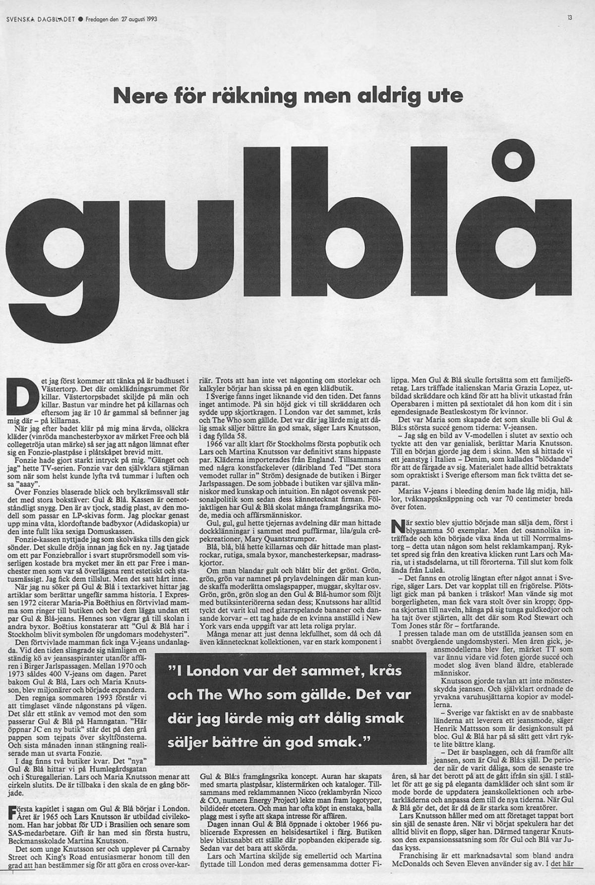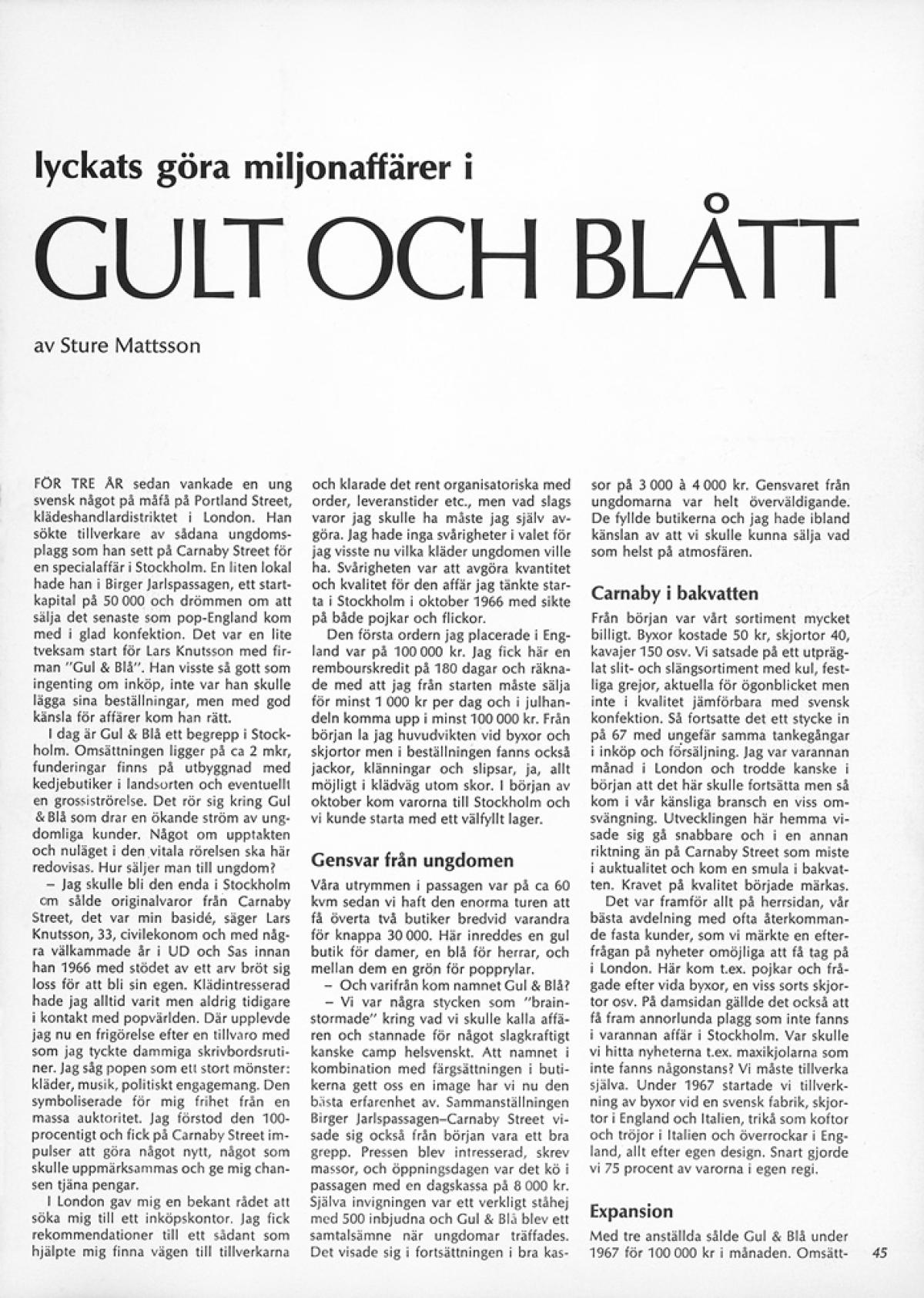 Varsågoda: bläddra i GUL&BLÅs bildvärld, eller läs här nedan bland urvalet av artiklar och intervjuer från 1966 fram till idag.